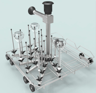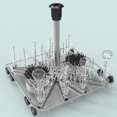 適用清洗試管、量筒、錐形瓶、球形瓶等,固定配備36支清洗柱,清洗柱有3種高度,分別為140mm,200mm,240mm;